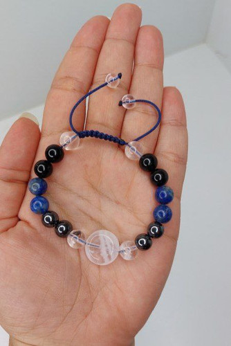 دستبند تک سنگ لاجورد با پلاک بینهایت