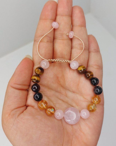 دستبند تک سنگ رزکوارتز با پلاک بینهایت