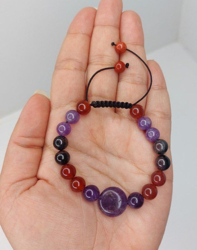 دستبند تک سنگ امیتیست با پلاک بینهایت