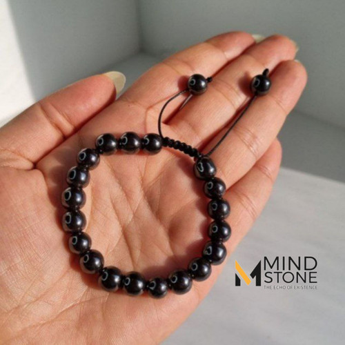 دستبند تک سنگ تورمالین سیاه با پلاک بینهایت