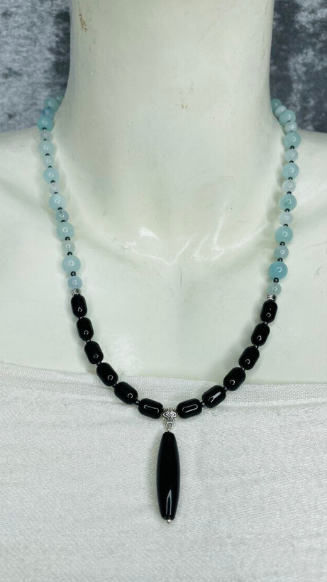 گردنبن اکوامارین و تورمالین سیاه