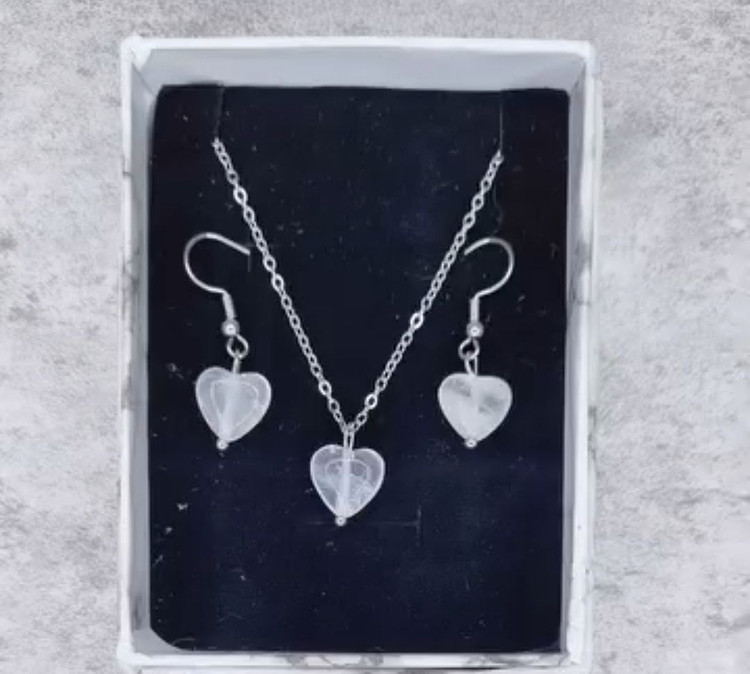 این نیمست چشمنواز، ترکیبیست از سادگی، لطافت و قدرت طبیعی. شامل یک گردنبند و یک جفت گوشواره، که هرکدام با سنگی از کریستال کوارتز طبیعی به شکل قلب تزئین شدهاند. کریستال کوارتز، با شفافیت خیرهکنندهاش، یکی از قدرتمندترین سنگها در دنیای انرژیست و به عنوان تقویتکنندهی همهی چاکراها، پاککنندهی ذهن و جذبکنندهی انرژیهای مثبت شناخته میشود ✨