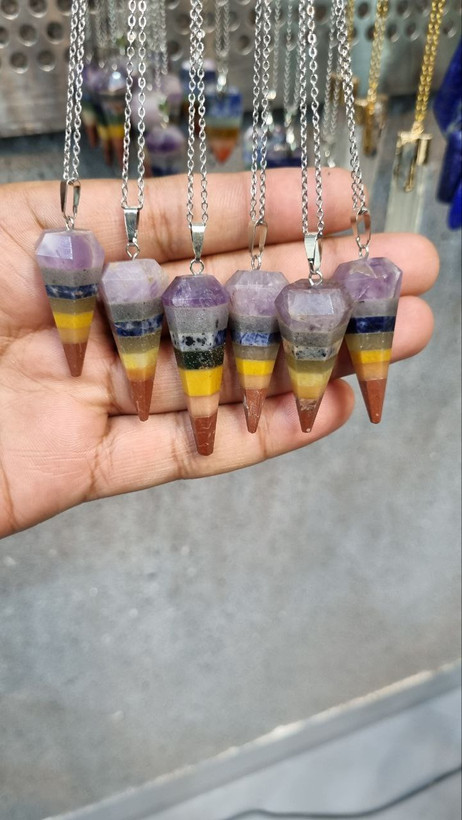 این مدال پاندولی، ترکیبی است از هفت سنگ طبیعی اصل، هر کدام نمایانگر یکی از هفت چاکرای اصلی بدن، که با دقت و ظرافت در کنار هم قرار گرفتهاند تا انرژی مثبت و تعادل را به شما هدیه دهند 💎✨