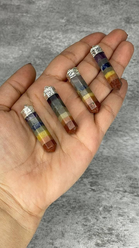 این مدال خاص با فرم قلمی و کشیده، الهامگرفته از طراحیهای سنتی هند ساخته شده و از هفت سنگ طبیعی اصل تشکیل شده که هرکدام بهصورت لایهلایه روی هم قرار گرفتهاند. این سنگها نماد چاکراهای اصلی بدن هستند و با دقت در کنار هم چیده شدهاند تا هماهنگی انرژی و تعادل درونی را به زندگی شما وارد کنند 🌿