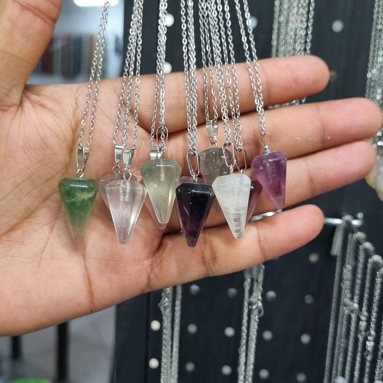 مدال پاندولی فلورین، یک انتخاب خاص و خلاقانه برای کسانیست که هم زیبایی طبیعی سنگها براشون مهمه، هم اثرات انرژیدرمانی اونها. این مدال با فرم پاندولی و نوکتیز طراحی شده و از سنگ طبیعی فلورین ساخته شده که به خاطر رنگهای آرامشبخش و طیفهای زیبای بنفش، سبز و گاهی آبیاش، چشم رو خیره میکنه ✨