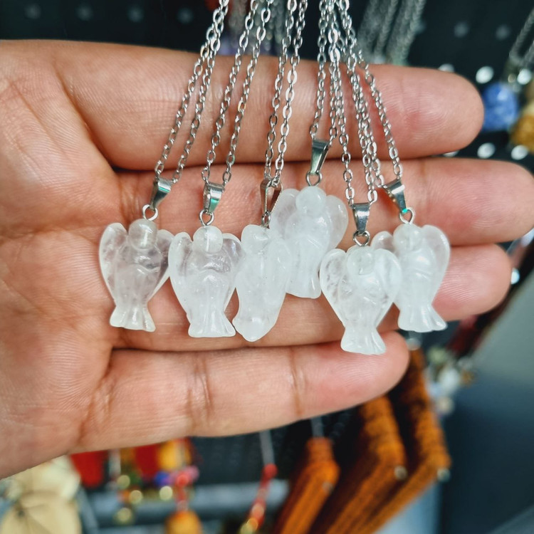 مدال فرشته نگهبان با سنگ کریستال کوارتز 🤍😇 | پاکی مطلق، انرژی بیمرز، محافظی از جنس نور