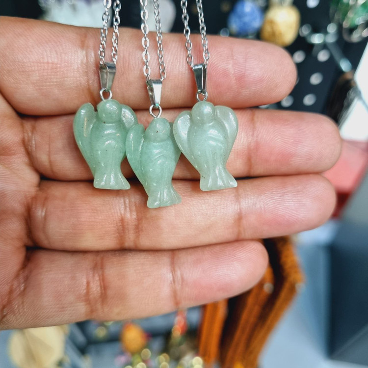 مدال فرشته نگهبان با سنگ اونتورین سبز 💚😇 | حمایت معنوی با انرژی رشد، شانس و آرامش قلب