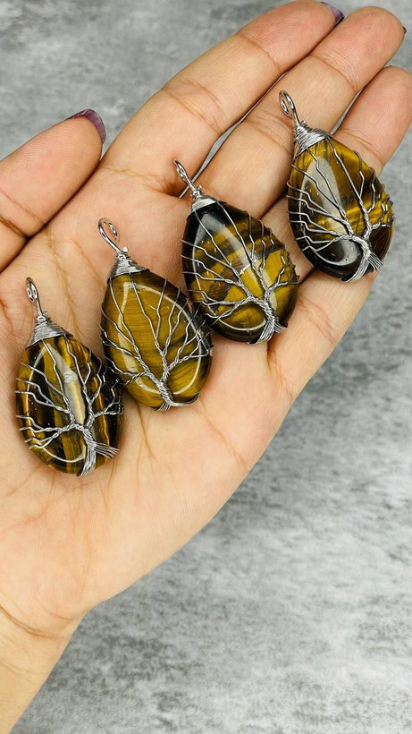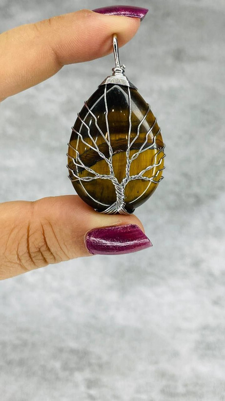 این مدال شگفتانگیز از سنگ طبیعی چشم ببر با تراش اشکی ساخته شده و با مفتولهای ظریف نقرهایرنگ بهشکلی هنرمندانه سیمبافت شده؛ طراحیای که هم چشمنوازه، هم حس منحصربهفردی از اصالت و انرژی در خودش داره 💫