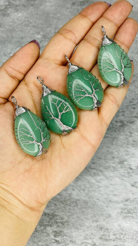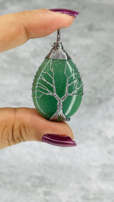 مدال سنگی سیمبافت اونتورین سبز 🍃✨ | انرژی تازه، آرامش و شانس در قالب هنری