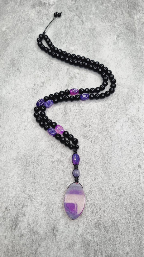 ترکیب عقیق بنفش حلیپیچ و اونیکس براق مشکی