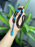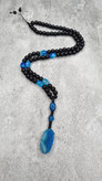 ترکیب عقیق آبی حلیپیچ و اونیکس براق مشکی با آویز اسلایس عقیق
