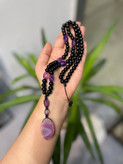 ترکیب عقیق بنفش حلیپیچ و اونیکس براق مشکی با آویز اسلایس عقیق
