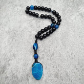 تسبیح ۳۳ دانه با عقیق آبی و اونیکس سیاه | آرامش قلب، رهایی از اندوه و تعادل درونی 💙🖤