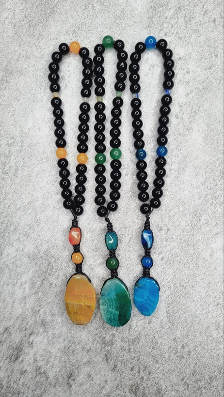 تسبیح ۳۳ دانه با عقیق زرد و اونیکس سیاه | روشنی دل، امید و آرامش درونی 💛🖤