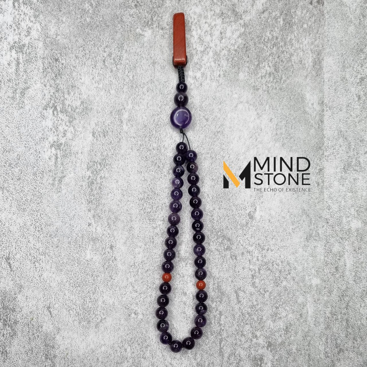 ✨ تسبیح تمام سنگ امتیست برزیلی با عدسک و شرابه جاسپر سرخ ✨