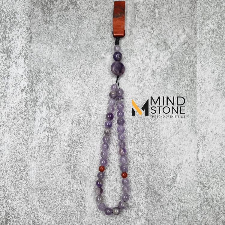 ✨ تسبیح آمیتیست سوسنی با عدسی و شرابه جاسپر سرخ ✨