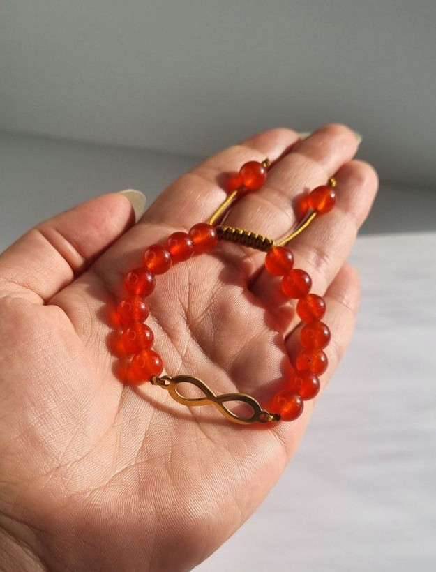 دستبند بینهایت با سنگ عقیق سرخ