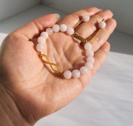 دستبند بینهایت با سنگ رز کوارتز (Rose Quartz)