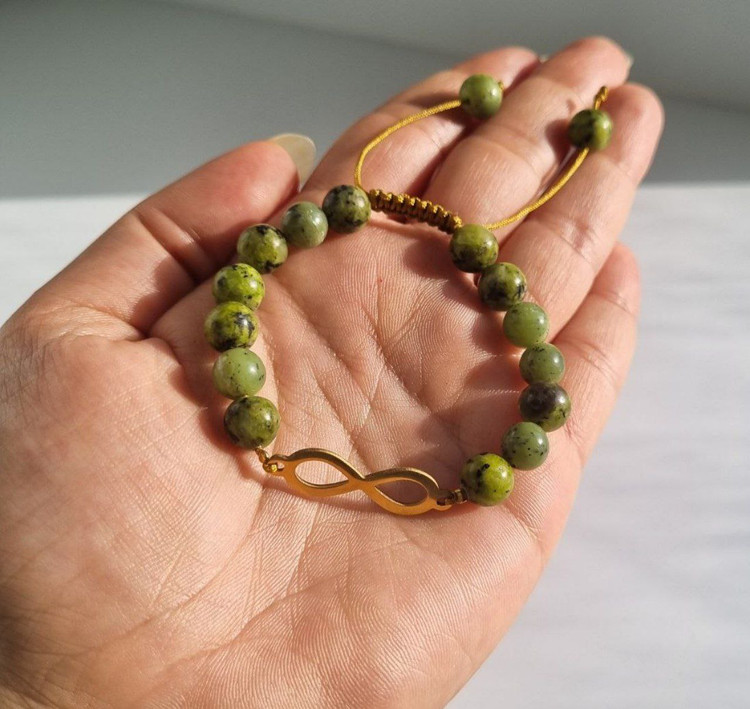 دستبند بینهایت با سنگ یشم سرپانتین (Serpentine Jade)