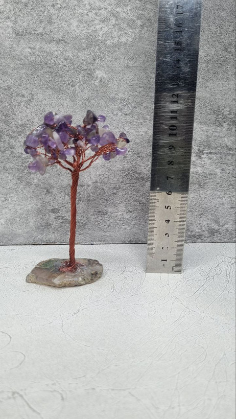 درختچه سنگی آمیتیست با پایه اسلایسی عقیق و بدنه مفتول مسی
